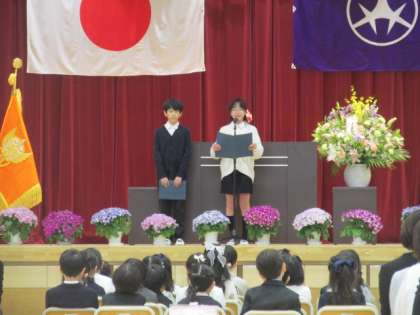 始業式に続き、令和6年度入学式が挙行されました。1年生3クラス85名の子どもたちが若林小学校の仲間入りとなりました。2年生からは、入学をお祝いして、合奏披露と歓迎の言葉があり、6年生代表児童からは、学校紹介とともに、1年生が安心して生活できるように、しっかりサポートしていく決意が述べられました。校長先生からは、3つの「あ」について、「あいさつ」「あかるい笑顔」「あんぜん」ついてのお話がありました。いよいよ明日から学校生活が始まります。みんなで楽しく仲良く生活していきましょう!