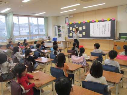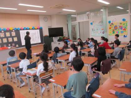 1年生の教室で学校生活がスタートしました。1日目は、担任の先生の自己紹介を聞いたり、自分の好きなことを友達に伝えたりしました。初めてのことばかりで、少し緊張した様子も見えますが、どのクラスも明るい笑顔と歓声でいっぱいでした。これからお友達をたくさんつくって、楽しく生活してほしいです。