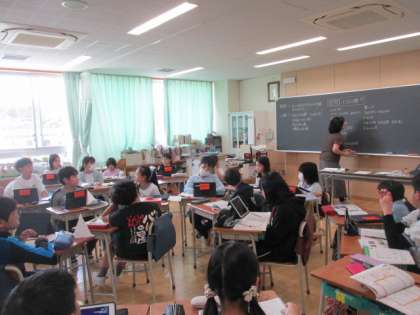 6年生の音楽の授業では、皆で歌い方を様々工夫しながら合唱に取り組んでいます。音楽室からは、とてもきれいな歌声が聞こえてきます。4年生では、社会や理科の授業が始まっています。先生からの問いについて積極的に調べて答えを見付けています。5年生では、協働的な学びが始められています。お互いの意見や考えをよく聞いて学びを深めています。