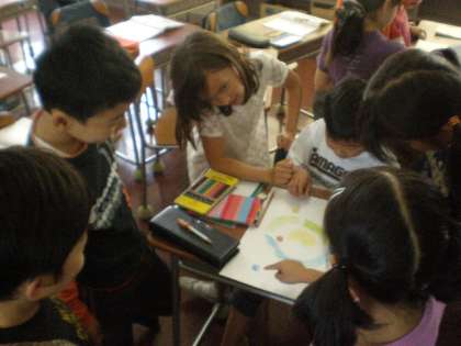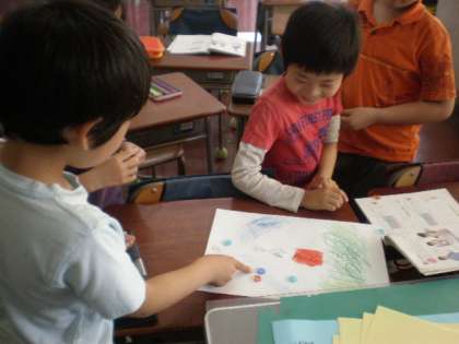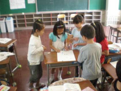 3年生が算数の学習の一環として、おはじき遊びをしました。