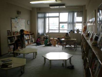 図書室では静かに読書を、絵本室では子供達による紙芝居が上演されていました。