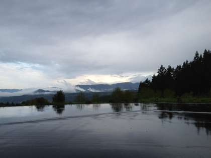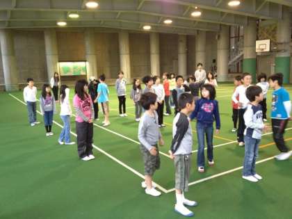 朝の会は屋根付き広場でした。寒いくらいですが、子供たちの顔に成長がみられます。