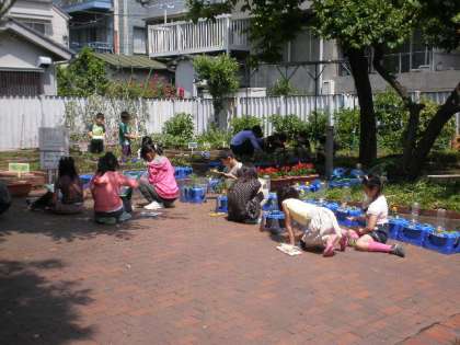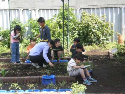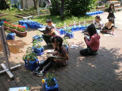 学校菜園にもたくさんの植物が植えられていて、新緑のまぶしい季節になりました。