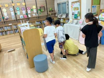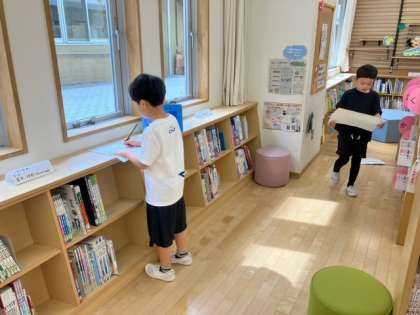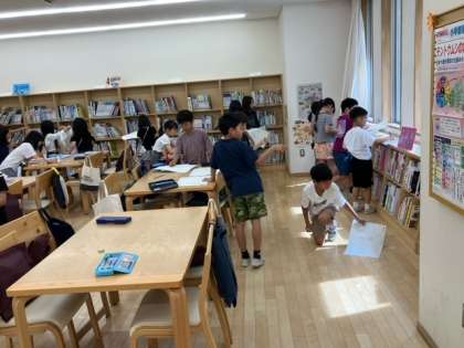 若林小学校の図書室、どこにどんな本があるのだろう?と、探検しながらワークシートを完成させていました。普段はあまり近づかない棚にもじっくりみる時間があったことで、今までは手にとったこともない分類の棚からもおもしろそうな本を見つけられた子もいました。