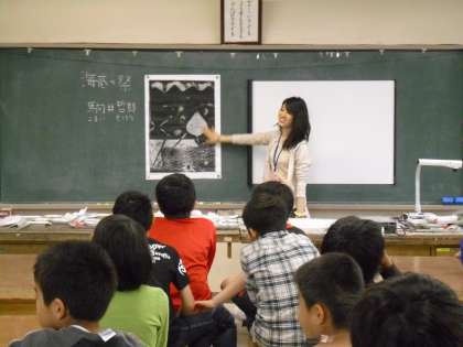 5月22日(火)世田谷美術館の方をお招きして、美術鑑賞教室の事前授業を行いました。美術館の作品により親しむことができるよう、作品と同じような技法で表現する体験として、葉っぱやレースなどを使った版画の授業を行いました。