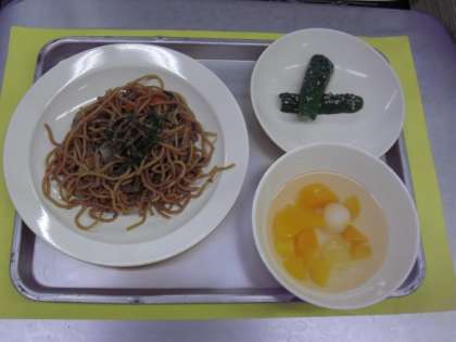 献立名 ソース焼きそば 牛乳 キュウリの中華味 フルーツ白玉