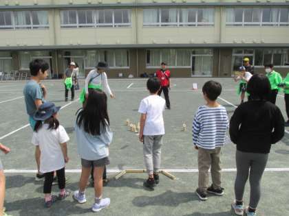 6月2日(日)に本校を会場に地域のスポーツ交流会が開催されました。競技は「モルック」木の棒を投げ、当たったピンの点数の合計で勝敗が決まります。幼児から大人までモルックを通して楽しくスポーツに親しみました。子どもたちには、今後も、地域の様々な行事に参加し、地域の人との交流を深めてほしいです。