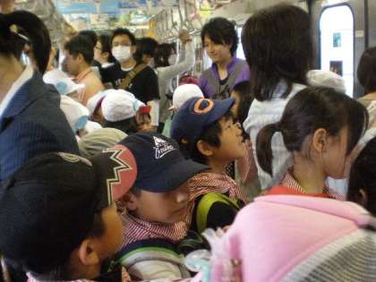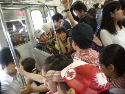 行きは通勤時間帯と重なったため、車内がかなり混み合いました。
