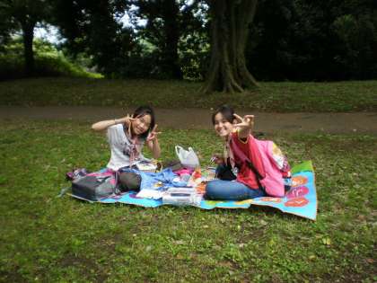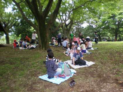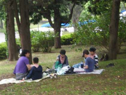 雨が降ってきたので、原っぱではなく、木の下でおいしくいただきました。