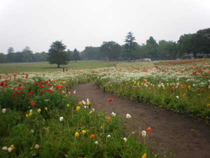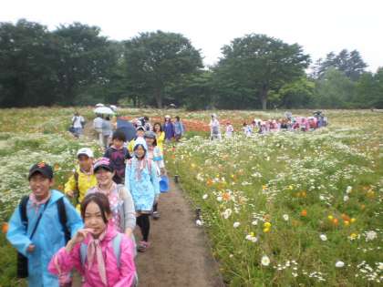 途中、きれいなお花畑がありましたので、急遽、集合写真を撮りました。