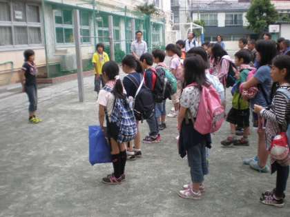 全員無事に若林小に戻ってきて、帰校式が行われました。