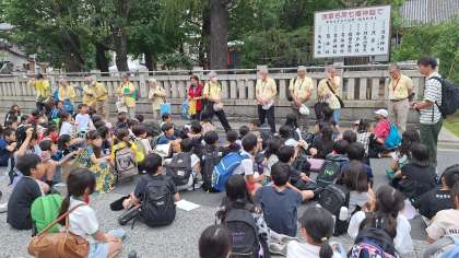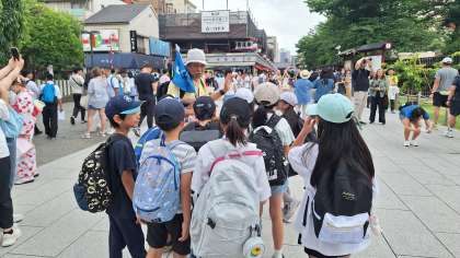 昼食を終えて浅草寺に向かいました。浅草寺では、ボランティアガイドさんに案内をしてもらいました。浅草寺の歴史や文化、商店街の移り変わりなど、詳しく説明していただきました。子どもたちも積極的に質問をし、学びを深めていました。