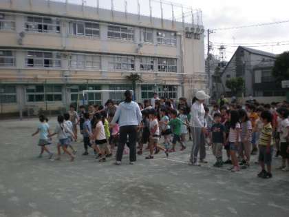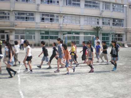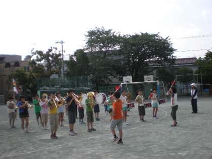 鼓笛隊の演奏に合わせて、全校児童が教室に戻ります。