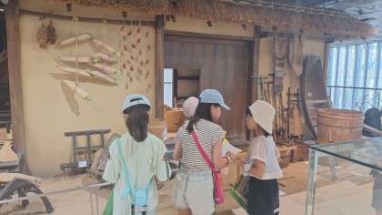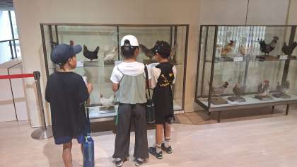 午前は、東京農業大学にある「食と農の博物館」を見学しました。様々な生き物の剥製や古民家、昔の道具、熱帯植物など、たくさんの展示物を見ました。世田谷にこんな貴重な博物館があることを知り、子どもたちも驚いていました。