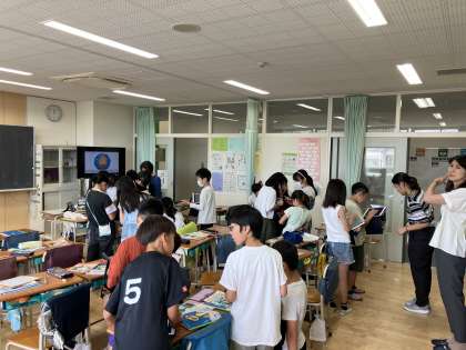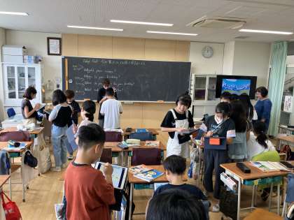 子どもたちは、自分の覚えている英語を使って、先生方に真剣に自分の考えを伝えたり、話し合ったりしていました。