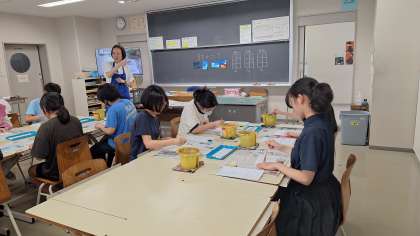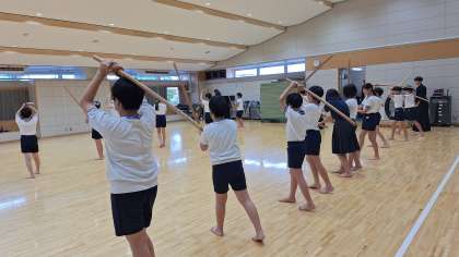 授業体験の後は、楽しみにしていた部活体験。中学生の先輩から丁寧に優しくやり方を教えてもらい、楽しく活動することができました。運動系、文化系、様々な部活があり、今からどの部活にしようか、談笑していました。