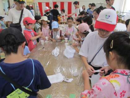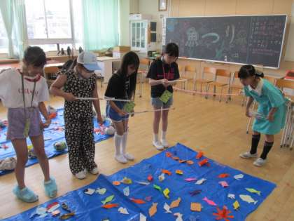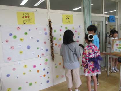 7月27日(土)に第40回「若林こどもまつり」が開催されました。今年は、各団体のブースに加え、6年生と5年生が出店し、スタートから大盛り上がりのおまつりとなりました。小さい子から大人まで、誰もが楽しめる内容で、校舎内は笑顔と歓声でいっぱいになりました。