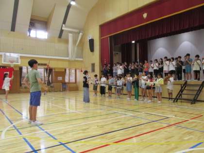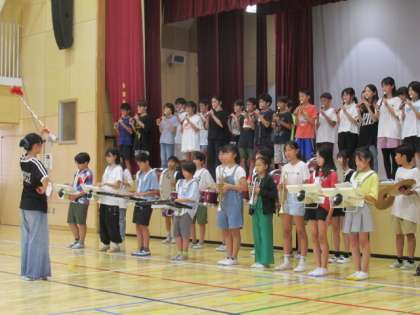 おまつりは、校舎内のほか、体育館でも開かれ、パターゴルフやピンボール、シュートゲームなどがありました。おまつりの閉会式では、6年生が鼓笛の演奏を披露しました。大勢の人たちから拍手をもらい、6年生も大いに喜んでいました。子どもたちが企画した出店も大成功となり、思い出に残る「若林こどもまつり」となりました。関係者の皆様、本当にお疲れ様でした。そして心よりお礼申し上げます。ありがとうございました。