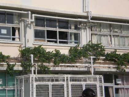 校舎の2階部分にはかなりきれいに緑色のカーテンができてきています。