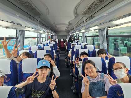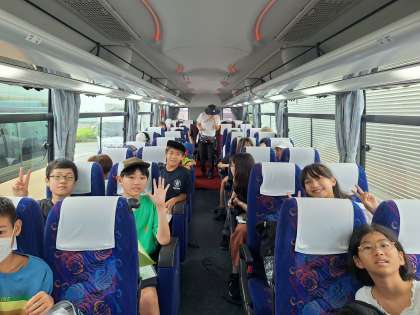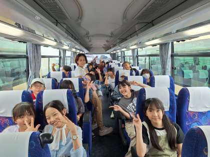 羽生サービスエリアで休憩をとり、再びバスに乗って日光に向かいます。バス内では、子どもたちが企画したバスレクリエーションで大盛り上がりです。
