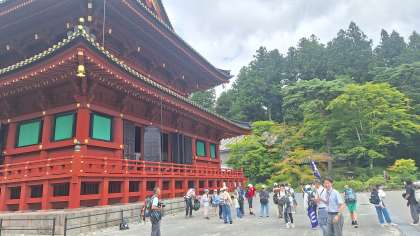 日光東照宮までの道のりは、いろは坂を通りました。バスガイドさんが、一つ一つの看板を説明してくださり、子どもたちは興味津々に話を聞いていました。今日は、土曜日。日光東照宮も観光客の方が多そうです。