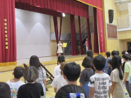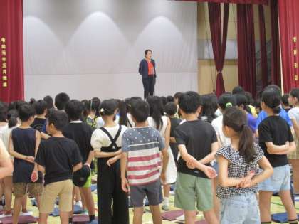夏休みが終わり、今日から2学期が始まり、子どもたちの元気な声と笑顔が学校に戻ってきました。始業式では、校長先生から「防災の日」そして、2学期に向けて努力を続けることの大切さについてお話がありました。代表児童(1年生・5年生)が、2学期に頑張りたいことについて発表しました。今学期も、様々なことにチャレンジして、大きく成長してほしいです。