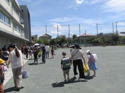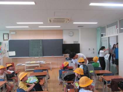 9月2日に学び舎合同の「引き渡し訓練」が行われました。安全に子どもたちを保護者の方に引き渡す、年に1度行われている訓練になります。当日は、気温が高かったために、教室で引き渡しを行いました。台風が多い9月であり、今後も災害に備えて安全に避難できるように、様々な場面を想定して避難訓練を実施していきます。保護者の皆様、本日は、訓練にご協力くださいましてありがとうございました。
