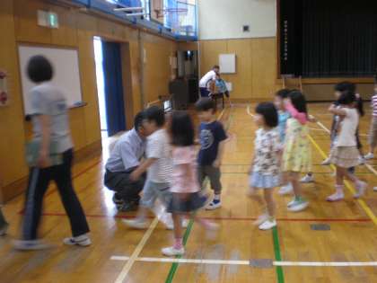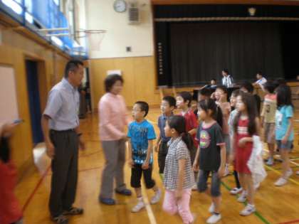 出口に校長先生がいたのでみんなで挨拶をしていました。