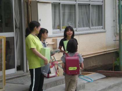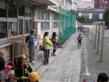 校長先生も緑の羽を名札につけていました。