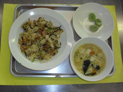 献立名 磯おこわ 牛乳 かき玉汁 そらまめ