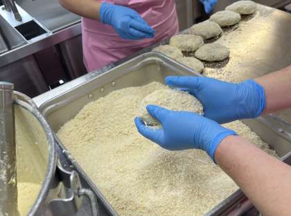 コロッケは調理さんがひとつひとつ手でまるめてくれました!