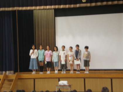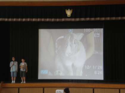 今朝の集会の時間は飼育委員会の発表集会でした。