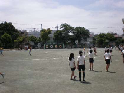 若小の校庭もすっかり乾き、夏のような日差しの中で、