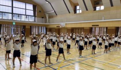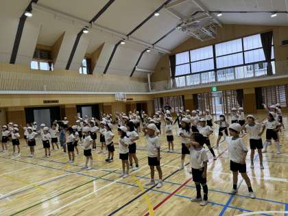 今週から始まった運動会練習、今日は体育館でダンスの練習をしました。さすが1年生、難しい動きもどんどん覚えていきます!先生の手本をよく見て、何度も何度も練習しました。当日が楽しみですね。