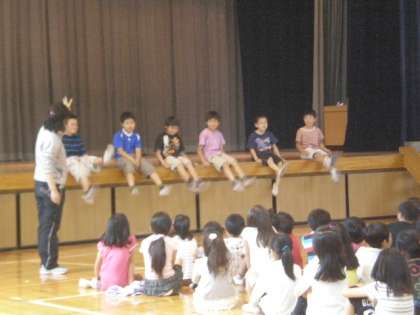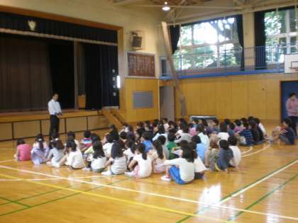 その代わりに4時間目、中学年の子たちが体育館に集まり、プール開きを行いました。