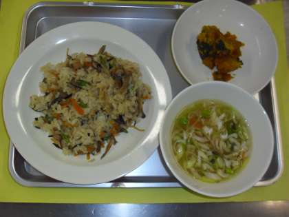 献立名 五目ごはん 牛乳 豆腐汁 かぼちゃの含め煮