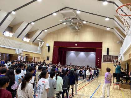今日は音楽朝会で「この星に生まれて」を歌いました。全校で歌声を揃えることで、より一層気持ちを合わせることができました。