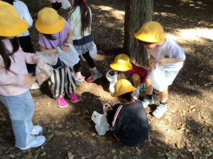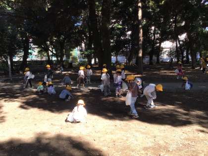 生活科の学習で、若林公園へ秋を探しに行きました。葉っぱの色の変化や、落ち葉など、多くの秋を感じていました。また、夢中になってどんぐりを拾い、「見て見て!」と集めたどんぐりを嬉しそうに見せてくれました。同じどんぐりでも色んな大きさや形、色があることにも気づいていました。