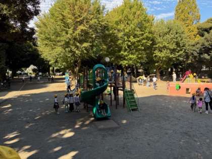 たくさんどんぐりを拾った後には公園でみんなで遊んで汗をいっぱいかきました。