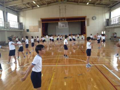 若林小学校 山崎小学校 城山小学校の6年生合同で、体育 美術など希望の教科を体験しました。