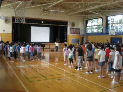 今朝の音楽朝会で、若小賛歌を歌いました。