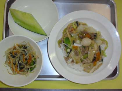 献立名 中華丼 牛乳 ナムル メロン