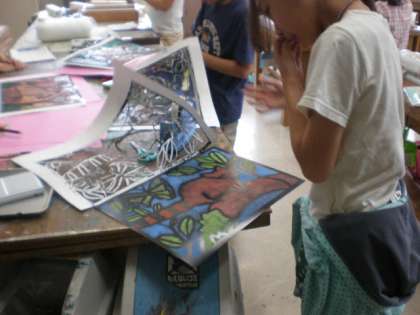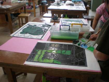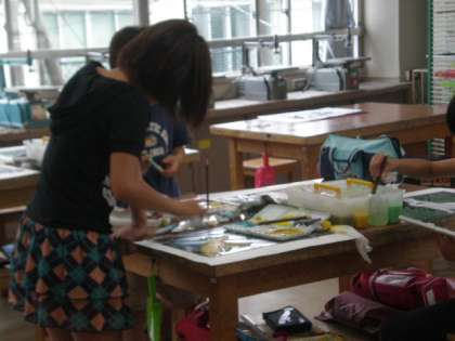 6年生が図工の学習でステンシル作りをしています。