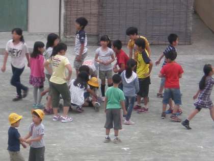 中には転んでしまった子もいたようですが、心配した子が集まってきました。