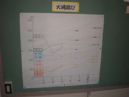 まずは前期分の大なわについて、校長室前に各学年の目標が掲示されました。
