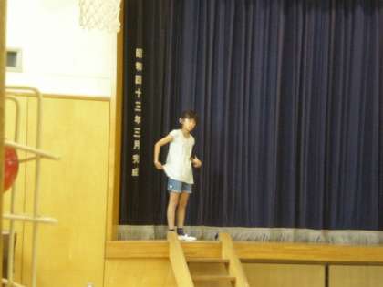 明日の集会に備えて、集会委員会の子達が体育館で練習をしていました。