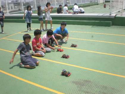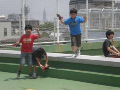 子供の予想以上にスピードが出るので、追いかけて走っている子もいました。