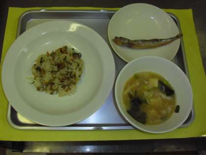 献立名 豚肉とゴボウのご飯 牛乳 味噌汁 ししゃものからあげ