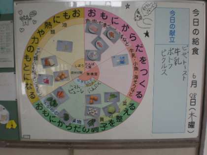 1、2年生の子の中には、今日の給食をチェックすることを、