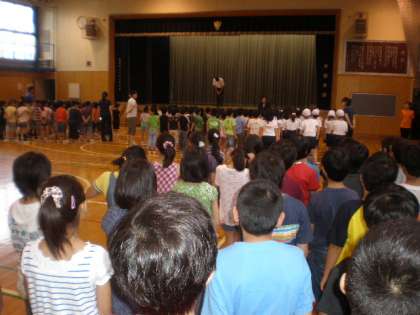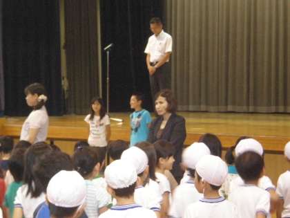 6年生の代表の子の言葉の後で、いつも通り校長先生と元気よく挨拶をしました。
